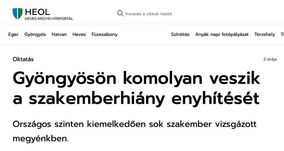 Kiváló szakemberek kerülnek ki országosan, ezen esetben Gyöngyösről is, Írta meg a HEOL.